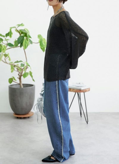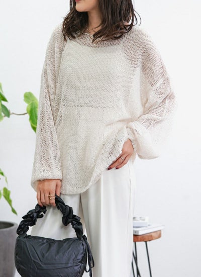 revoma【ふんわり軽やか。透け感で魅せる大人のシアーニット】 【30%OFF】モヘアタッチシアープルオーバー