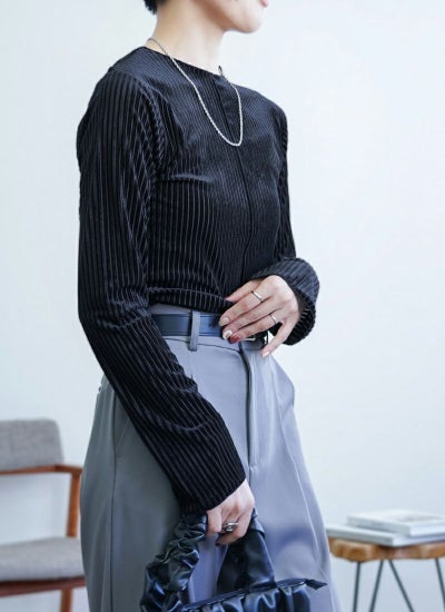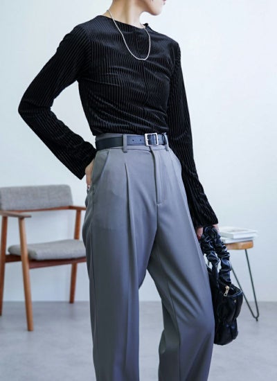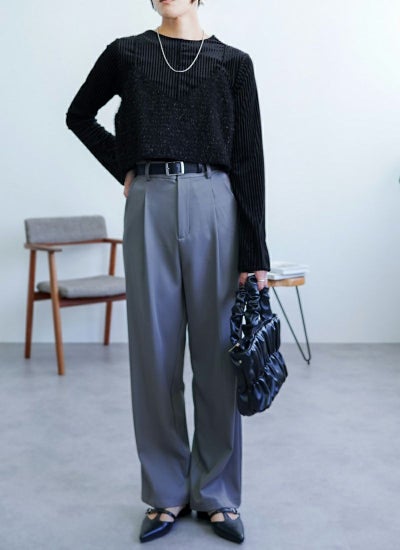 ストレッチ性があり、マットな光沢感が秋らしさを