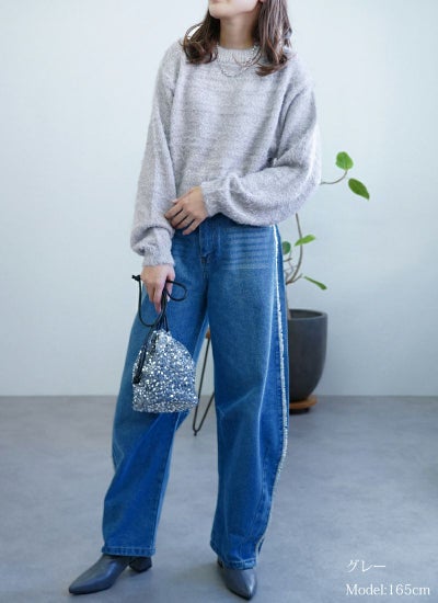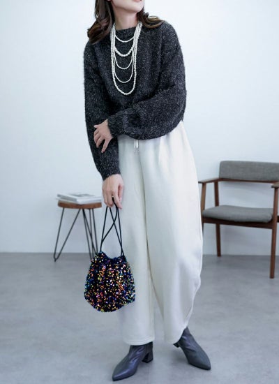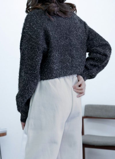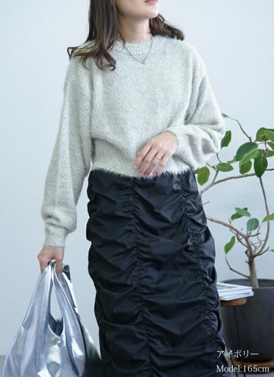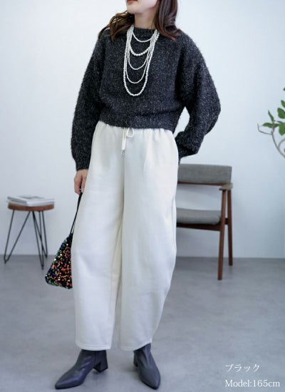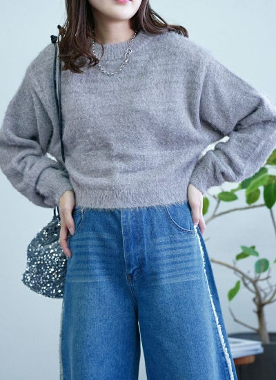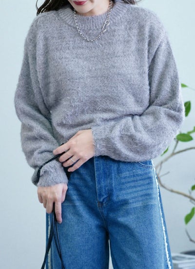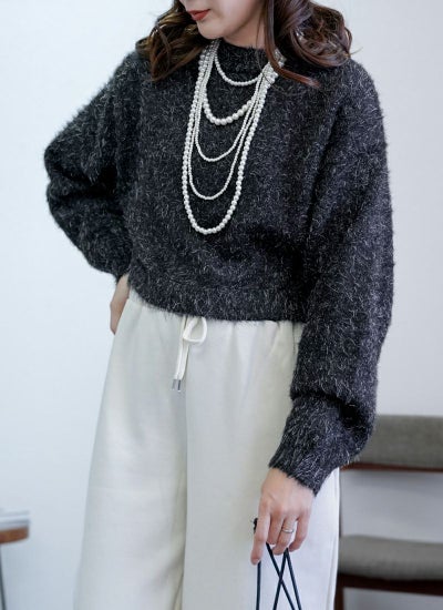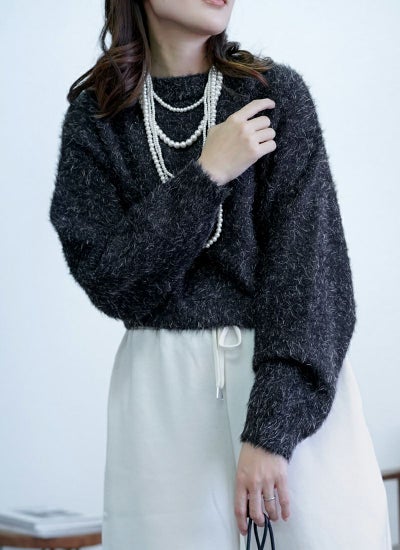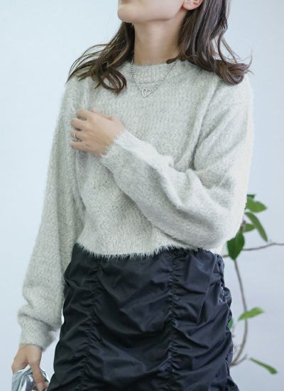 フェザーミックスの凹凸感が目を惹くクロップド丈ニット。