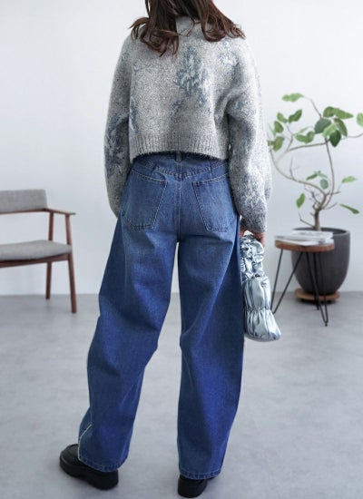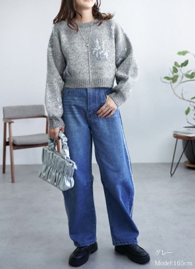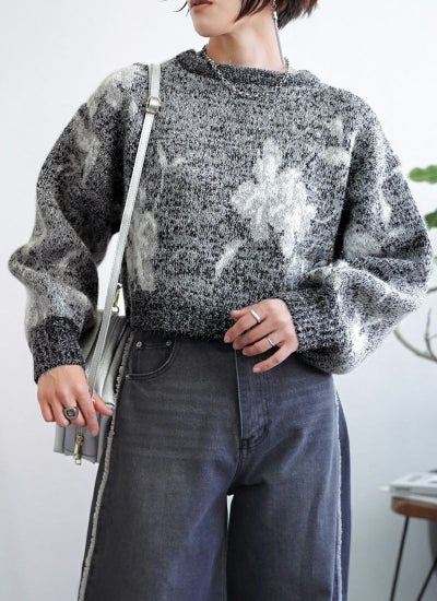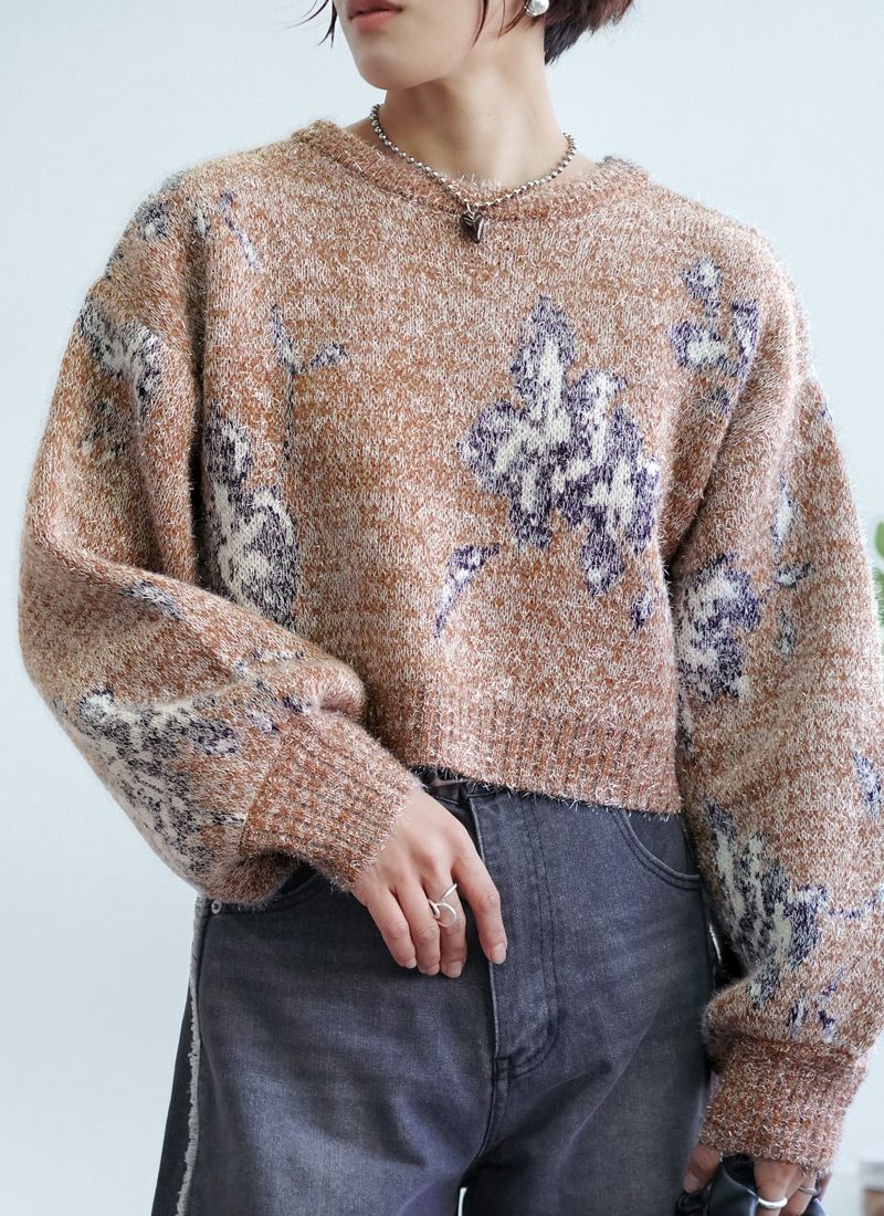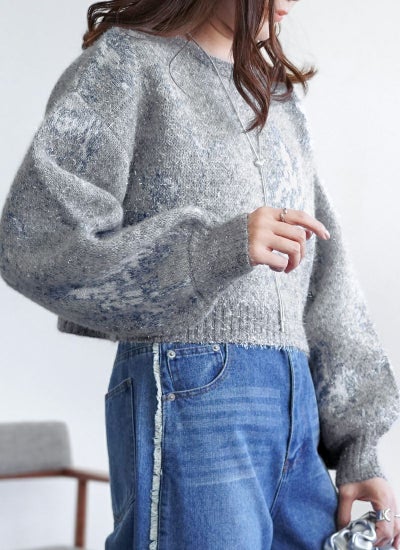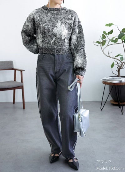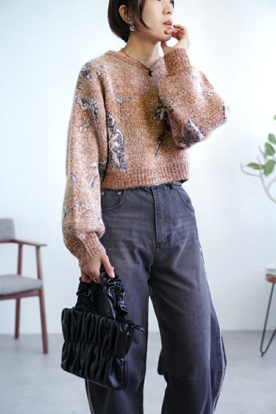 4. 【40%OFF】フラワージャガードクロップドラメニット