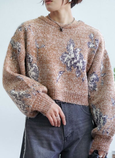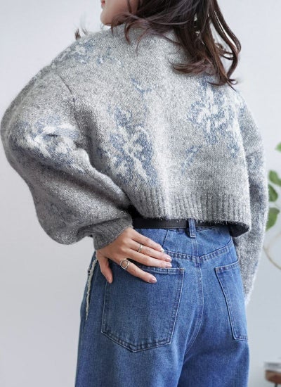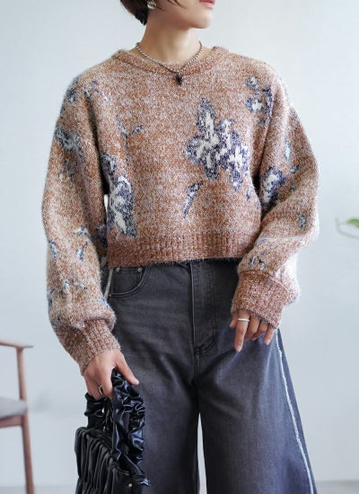 【新作おすすめ】 【40%OFF】フラワージャガードクロップドラメニット