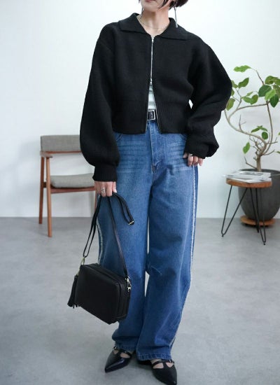 【新作おすすめ】 【30%OFF】ダブルジップニットカーデ