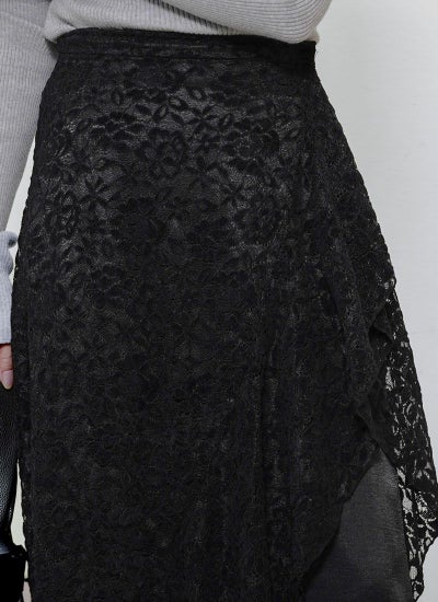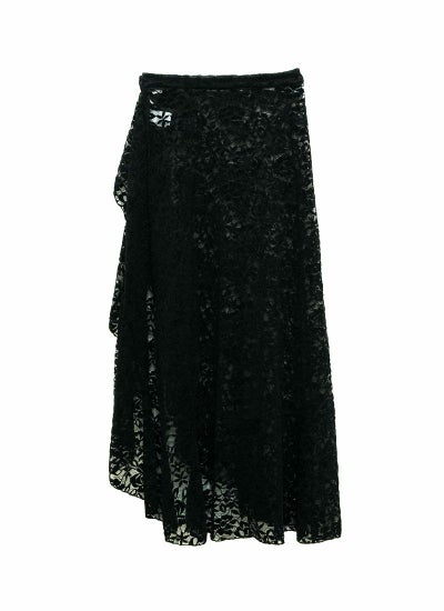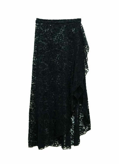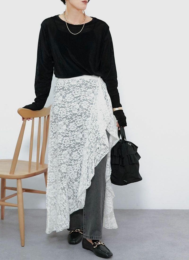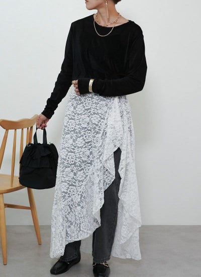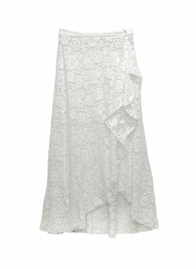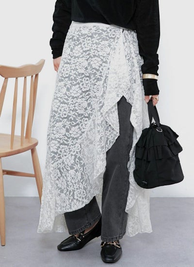 スリットと裾がフリルデザインになったレースラップ巻きスカート!