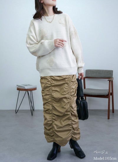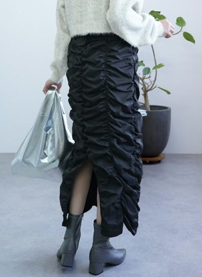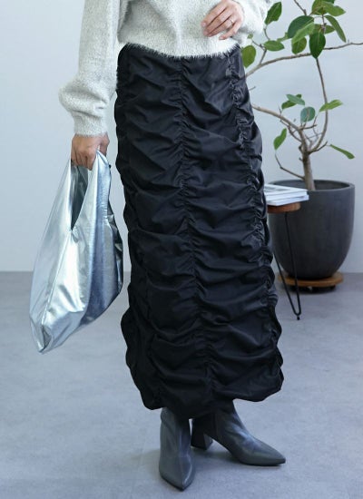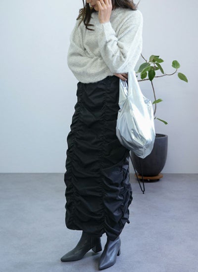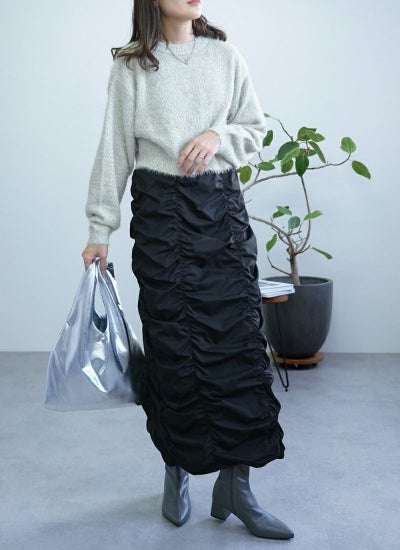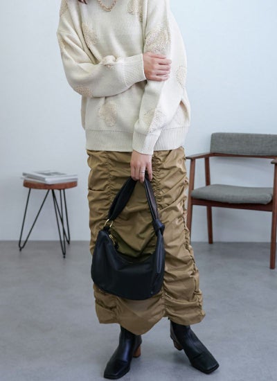 ギャザーの生み出すフォルムが、スタイリングの主役アイテムに。