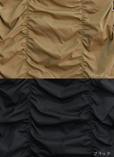 立体的なギャザーデザインは体のラインを拾いにくく、