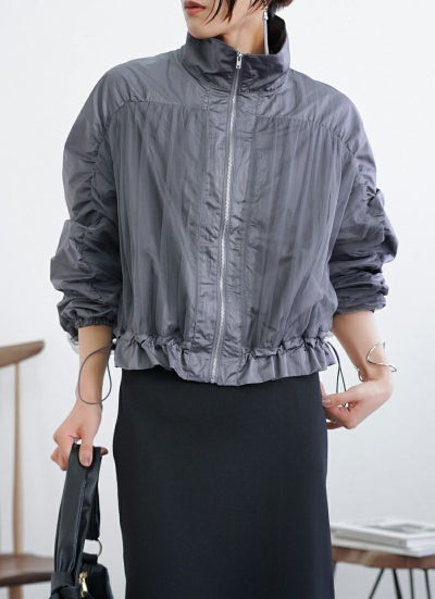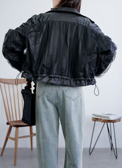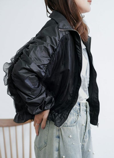 【新作おすすめ】 【30%OFF】チュールショートシャーリングブルゾン