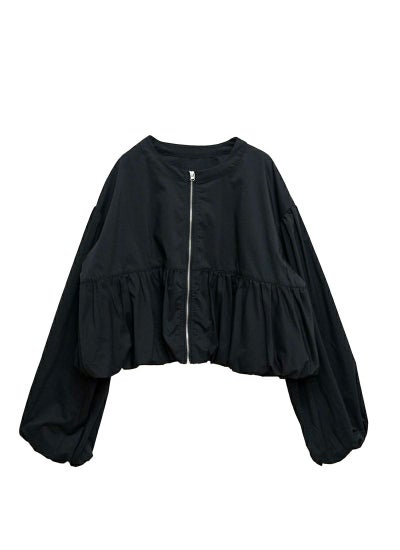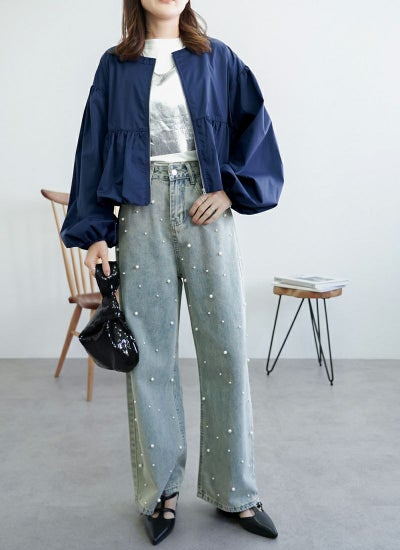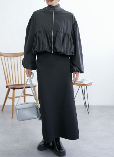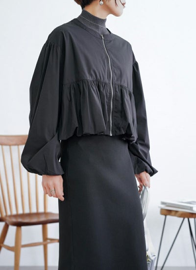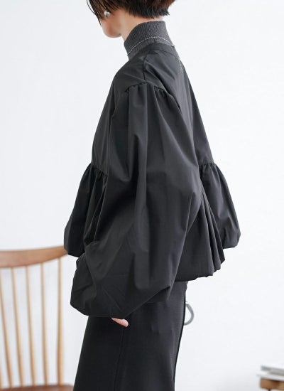 ふんわりとしたペプラムバルーンシルエットが可愛らしさを演出するブルゾン。