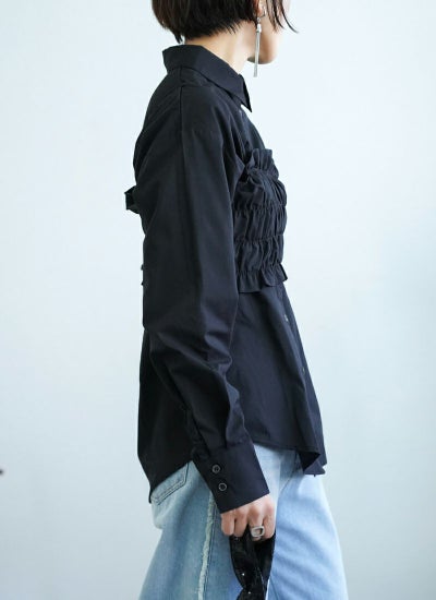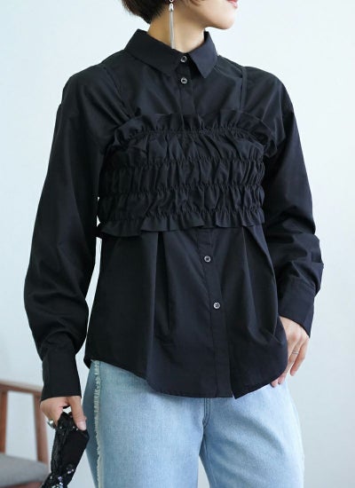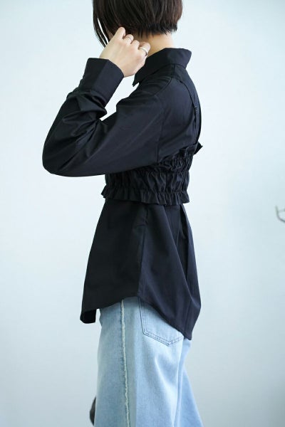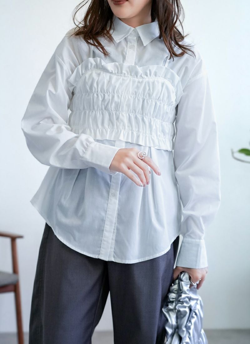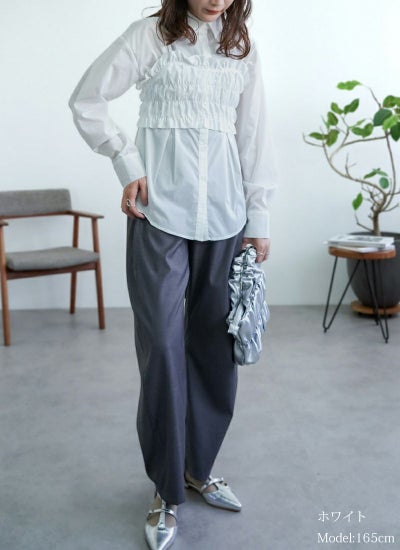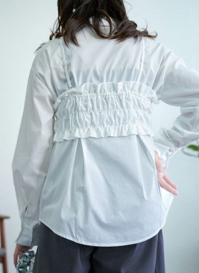 ブロード素材のビスチェ付きシャツ。