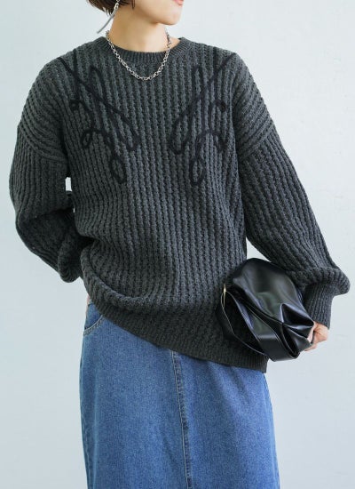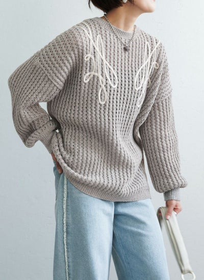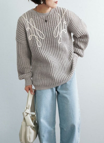 revoam【カジュアルに着ても女性らしい。秋冬に活躍する透かし編みニット】 【20%OFF】透かし編みテープ刺繍プルオーバー