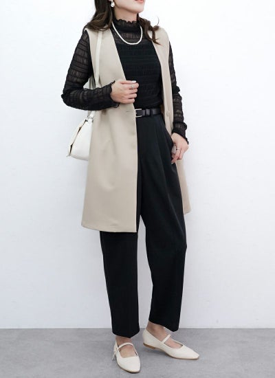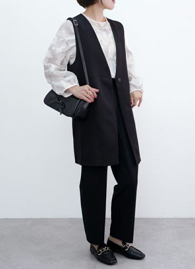 程よく少し長めな着丈で合わせるボトムを選ばず、きちんと感がありつつ着心地がラクな万能デザイン。