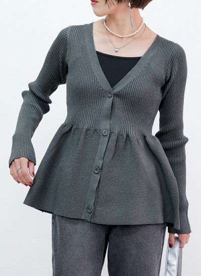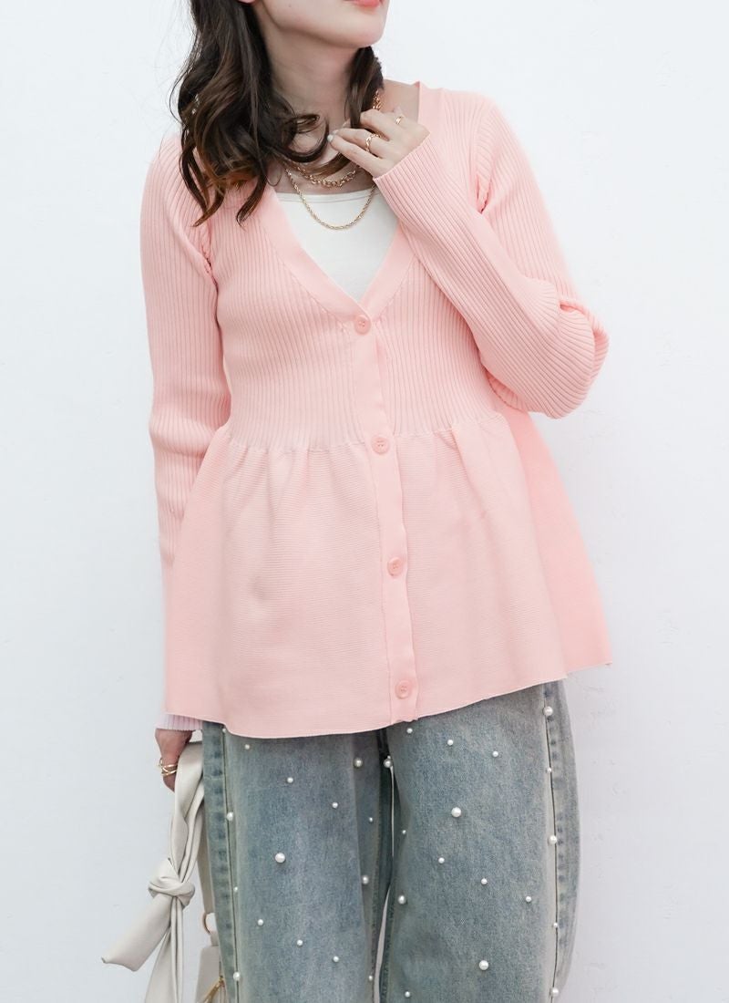 Vネックペプラムカーディガン