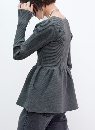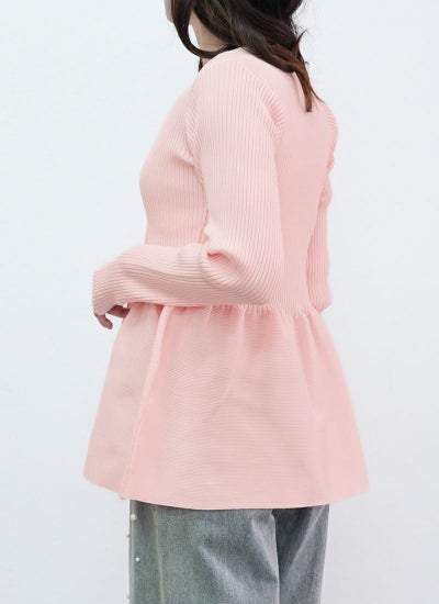 女性らしいペプラムシルエットの華やかなニットカーディガン。
