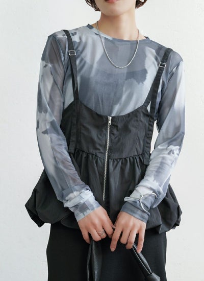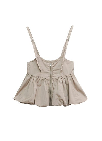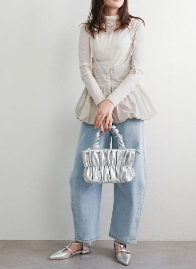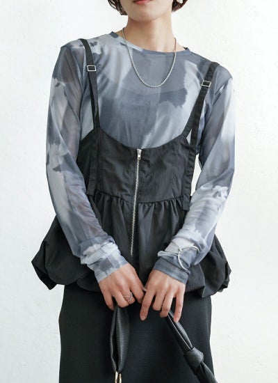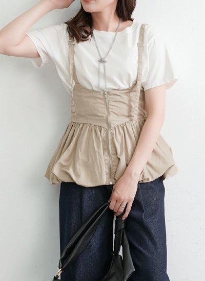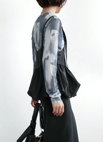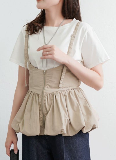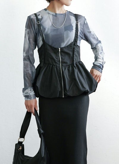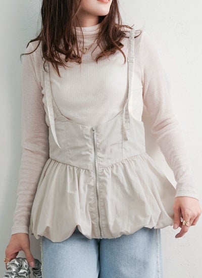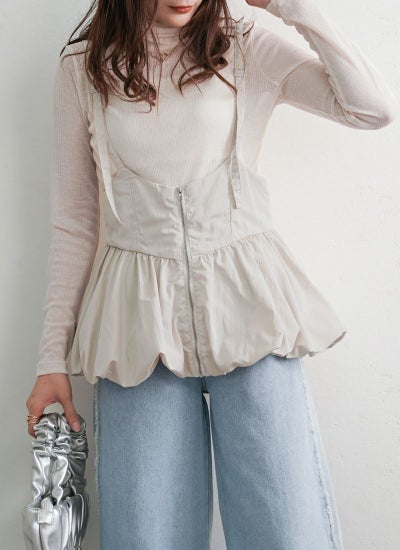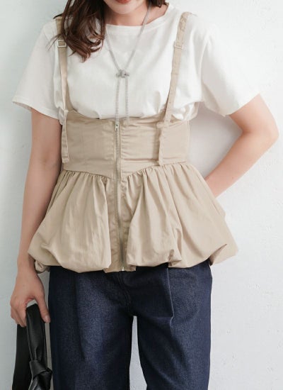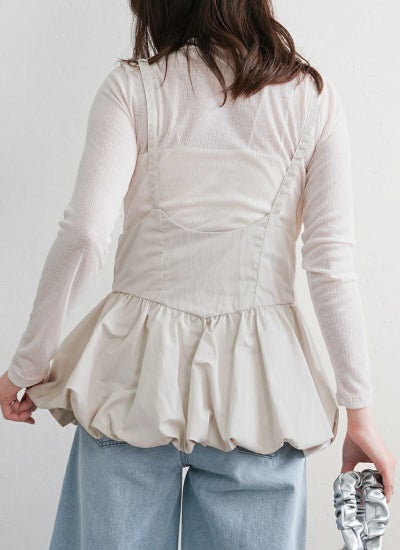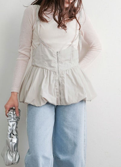 ハリのあるタフタ素材で立体感を演出したバルーンシルエットのビスチェ。