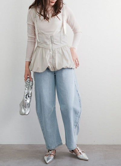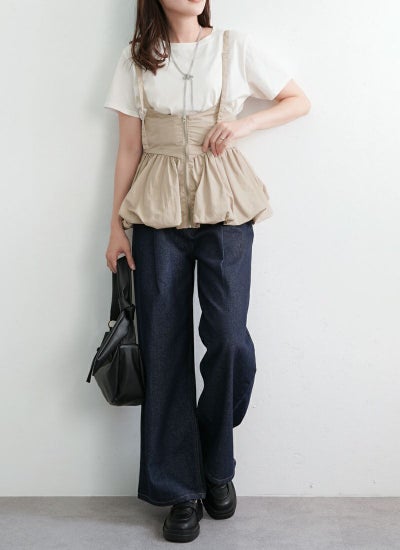 裾にかけてペプラムデザインとなっていて1枚持っているだけで存在感間違いなし◎