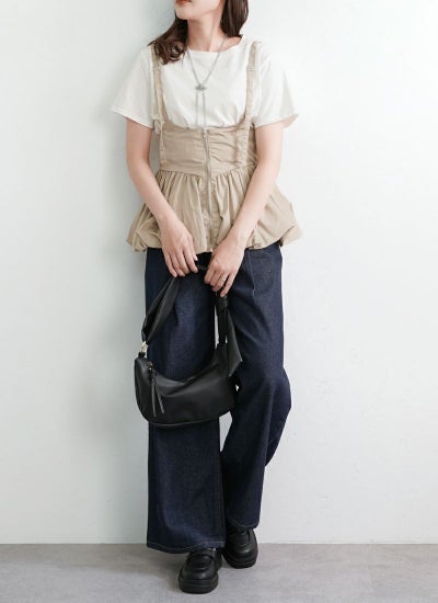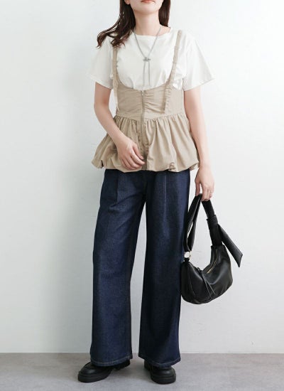 ふんわりとしたボリューム感が華やかさをプラスし、シンプルなトップスに重ねるだけでトレンド感のあるレイヤードスタイルが完成。