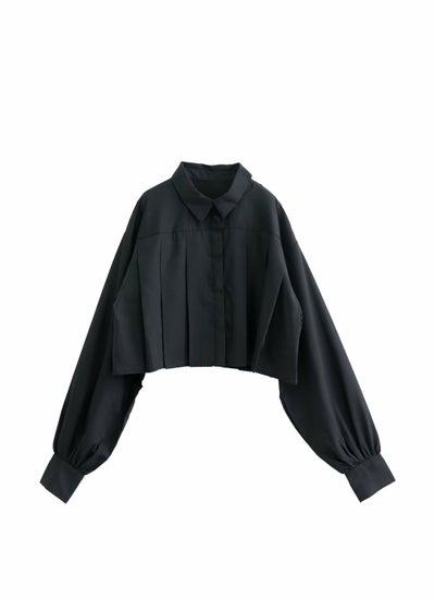 クロップド丈がトレンドのプリーツブラウス◎