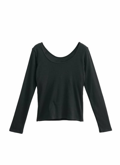 revoam【1枚でコーデが決まる、ラクしておしゃれなカップ付トップス。】 【20%OFF】バックオープンカップ付き長袖プルオーバー