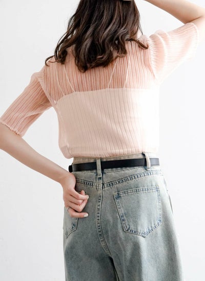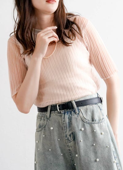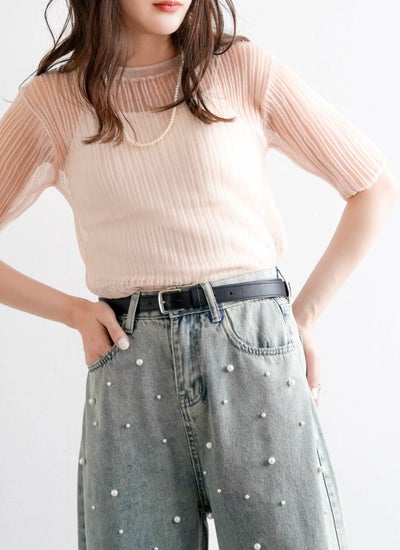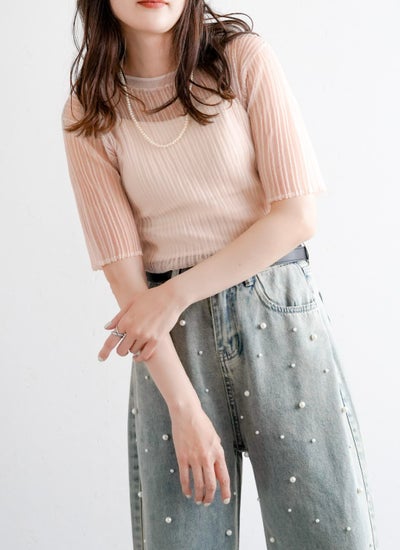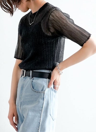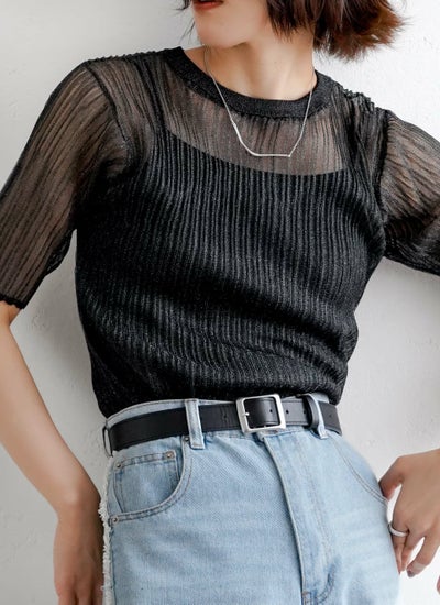 revoam【夏のレイヤードスタイルに推したい、半袖シアートップス】 【10%OFF】ラメシアー5分袖プルオーバー