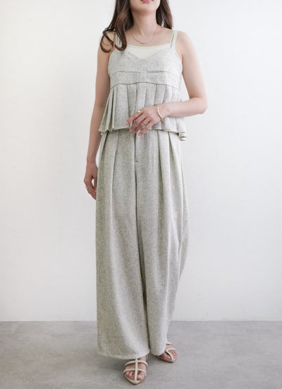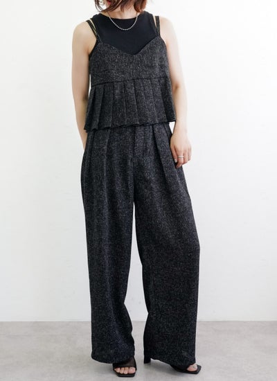同素材の251221 サマーツイードタックパンツとセットアップ風の着方がトレンドライクでおすすめです。