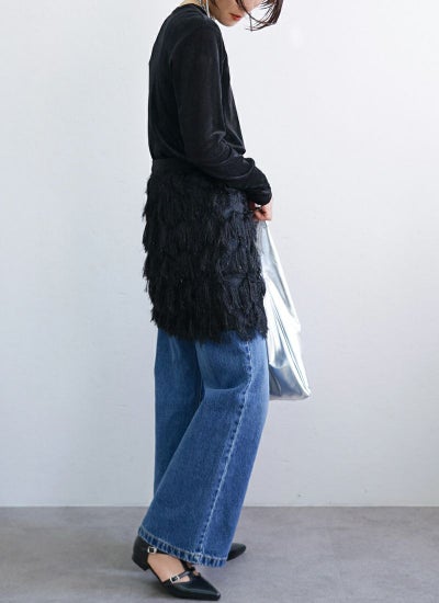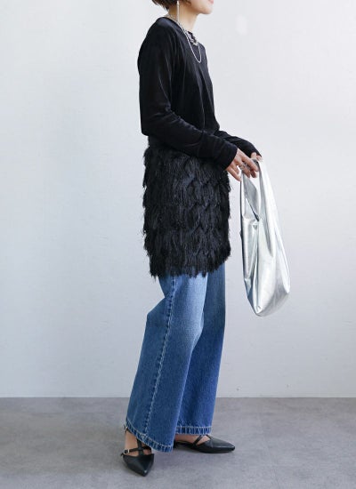 フリンジのデザインが大人も取り入れやすい1枚です。