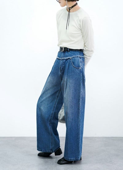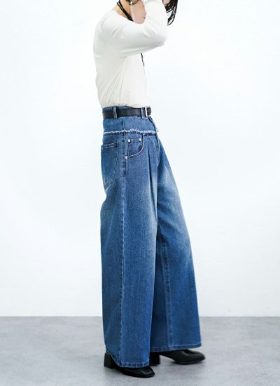 4. 【20%OFF】フリンジデニム切替タックパンツ