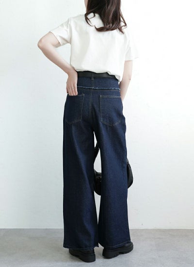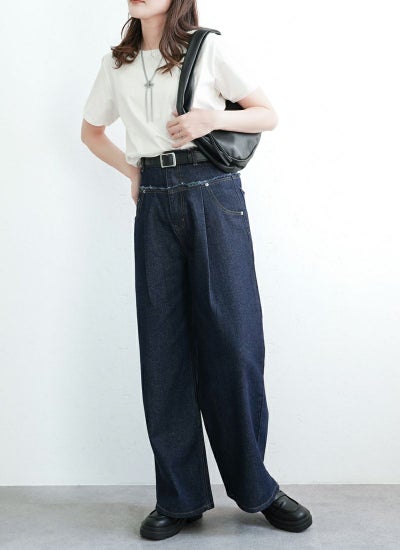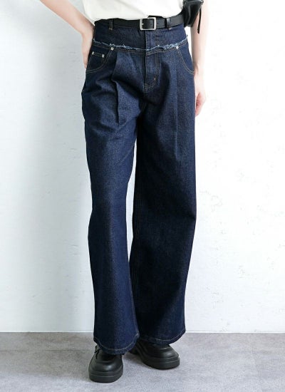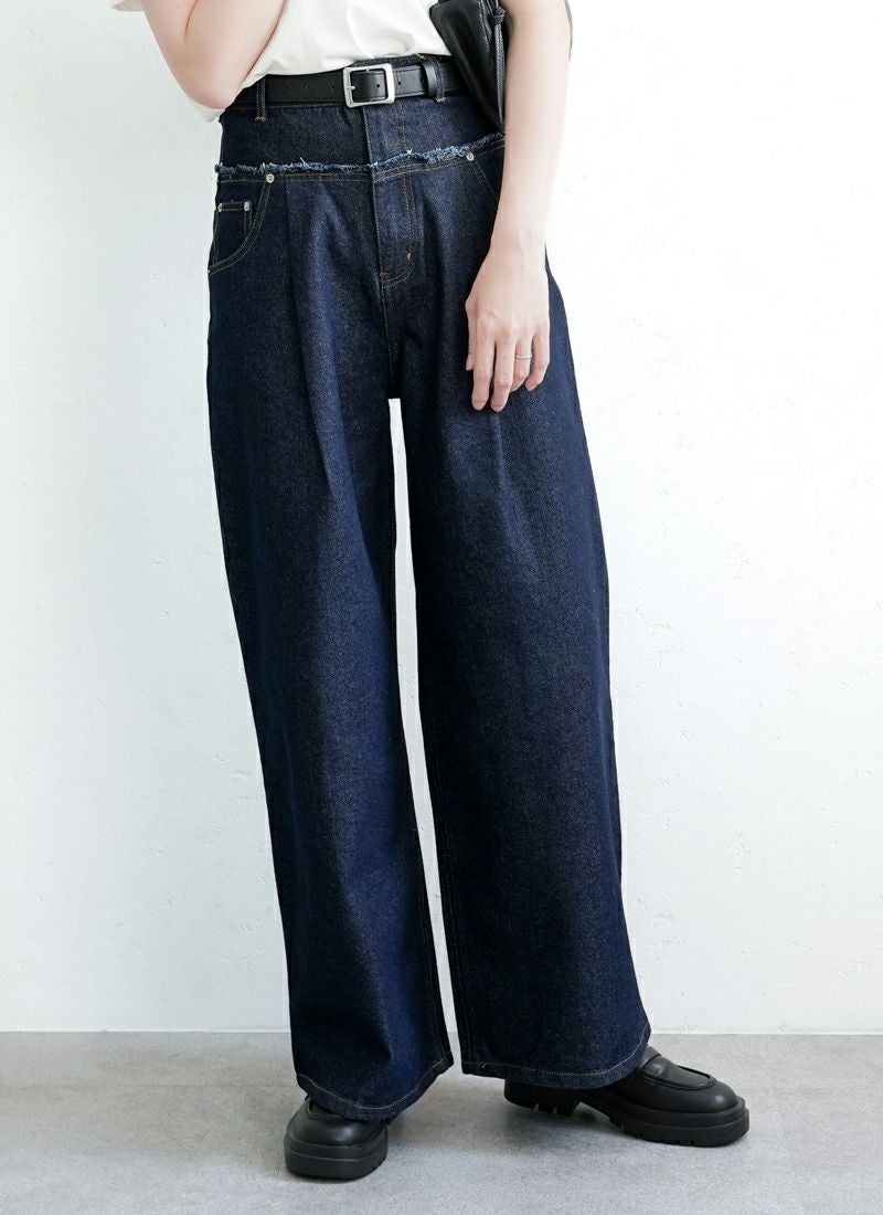 フリンジデニム切替タックパンツ