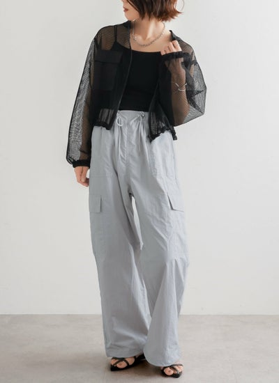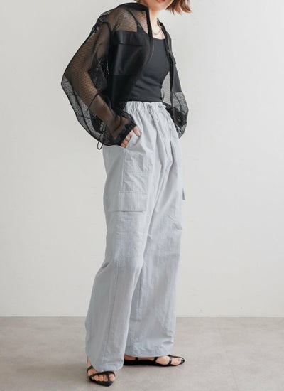 トレンドのナイロン素材にゆるシルエットなカーゴパンツ。