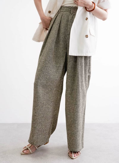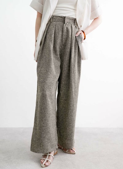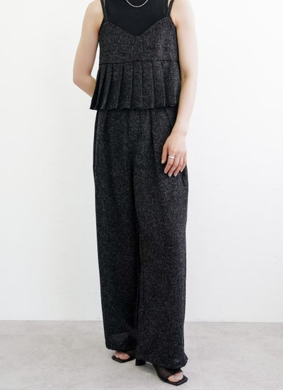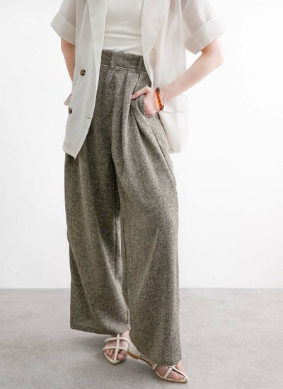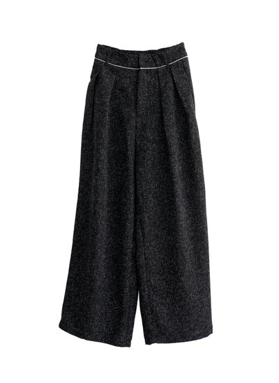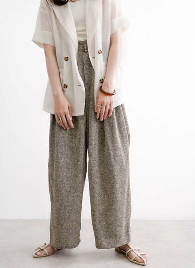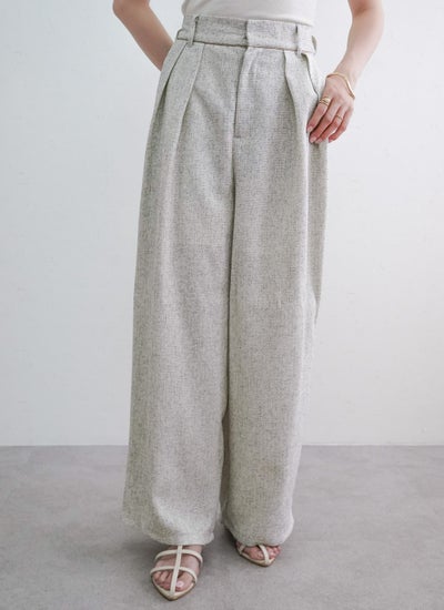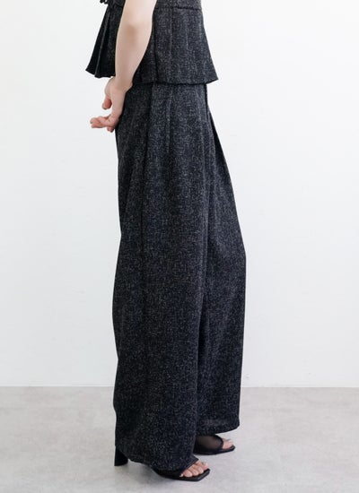 上品なツイード素材を使用したタックワイドパンツ。