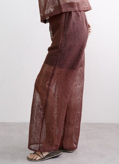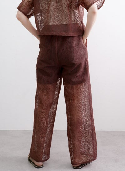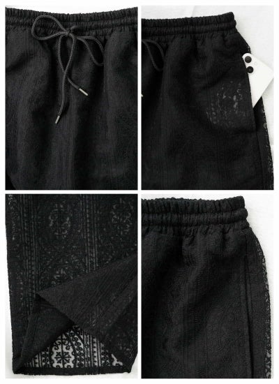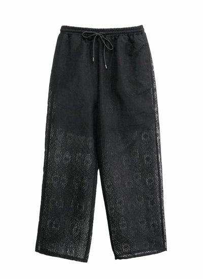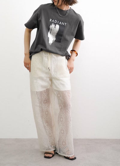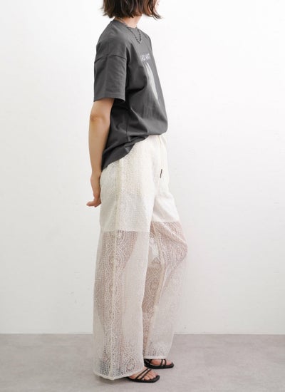 甘くない柄のクロシェ風のレースを使用したイージーパンツ。