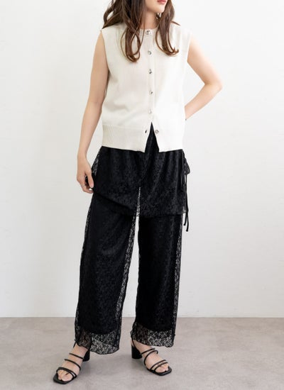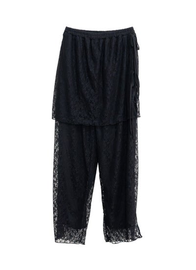 !】 【15%OFF】レーススカートレイヤードパンツ