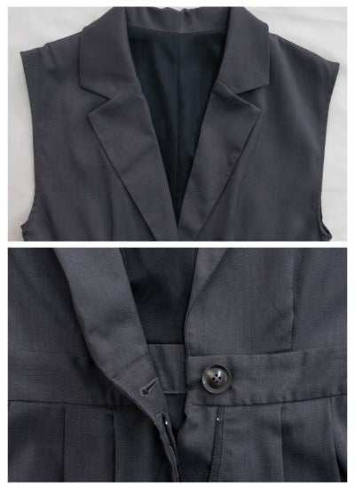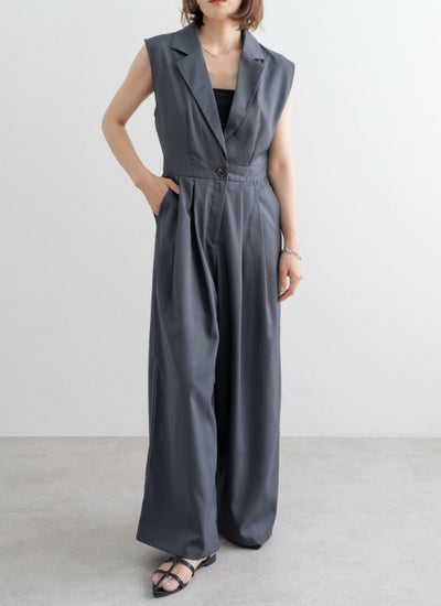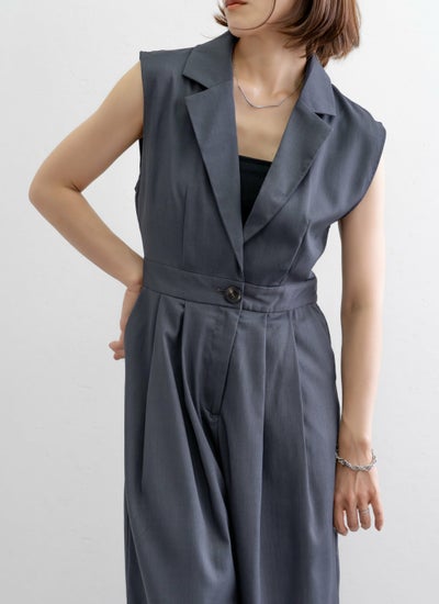 セットアップ見えするテーラードデザインのサロペット。