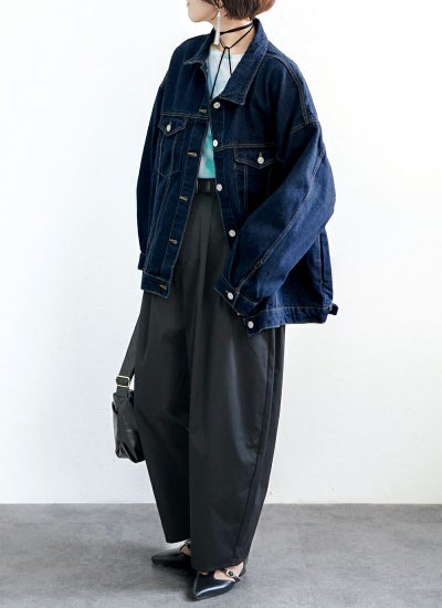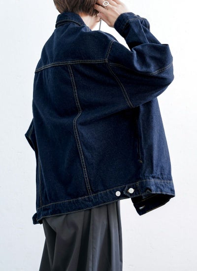 ゆったりと抜け感のある構築的なフォルムが魅力のオーバーサイズのデニムジャケット。