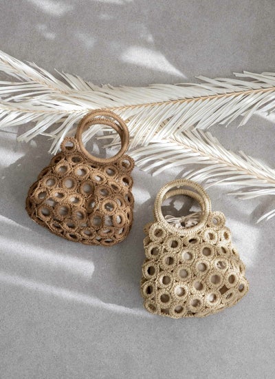 リングチューブをペーパーで編み込んだデザインがアイキャッチな、ミニサイズのカゴバッグ。