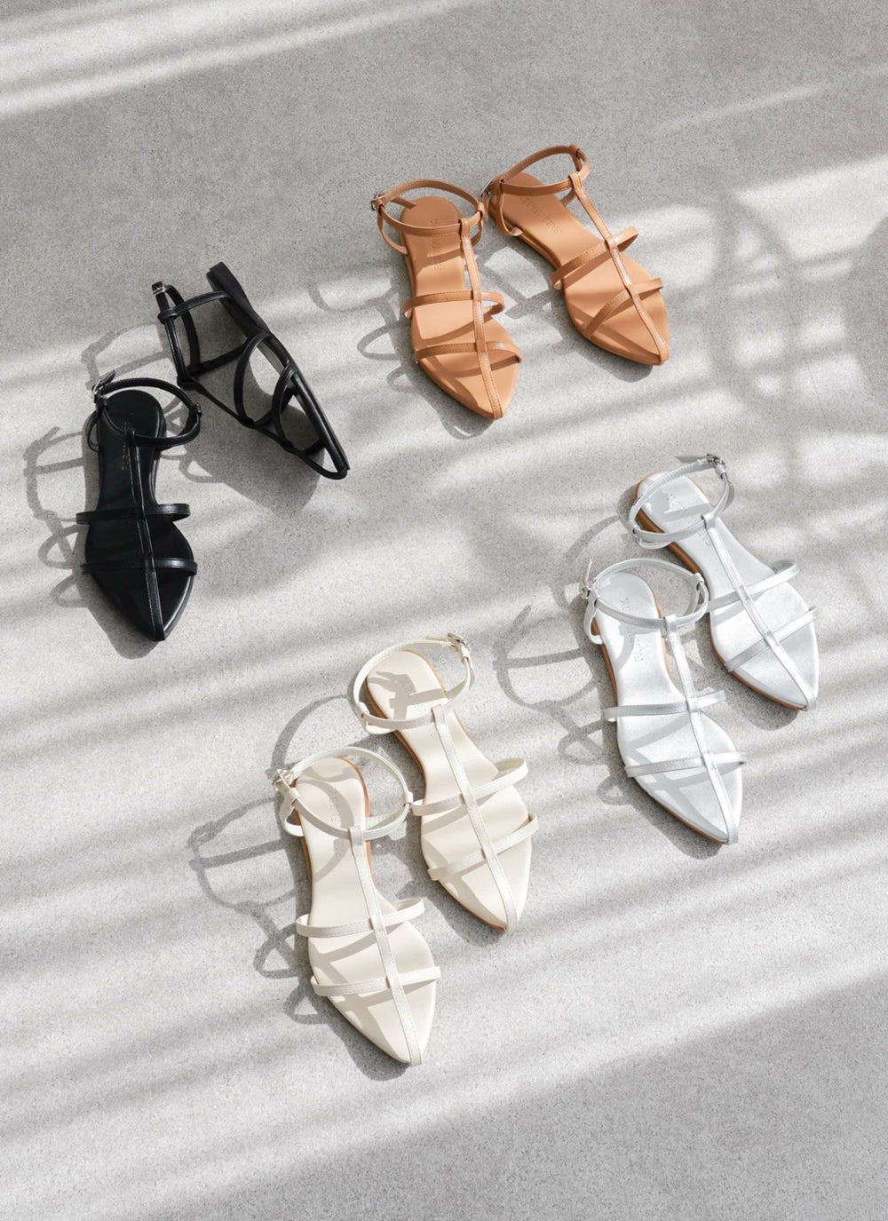華奢なストラップデザインが今年らしいフラットサンダル。