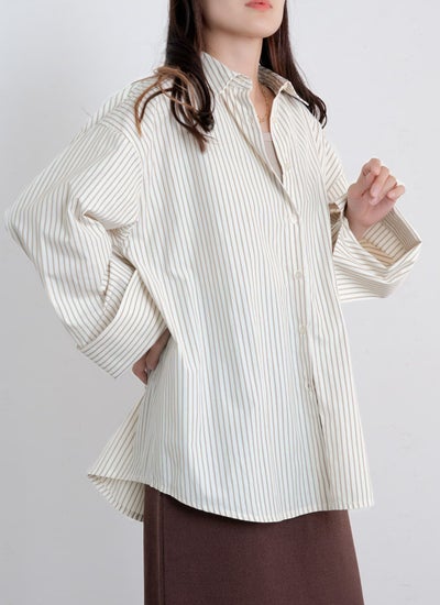 revoam【一枚でも羽織としても活躍する万能アイテム】 【10%OFF】ストライプビッグカフスシャツ