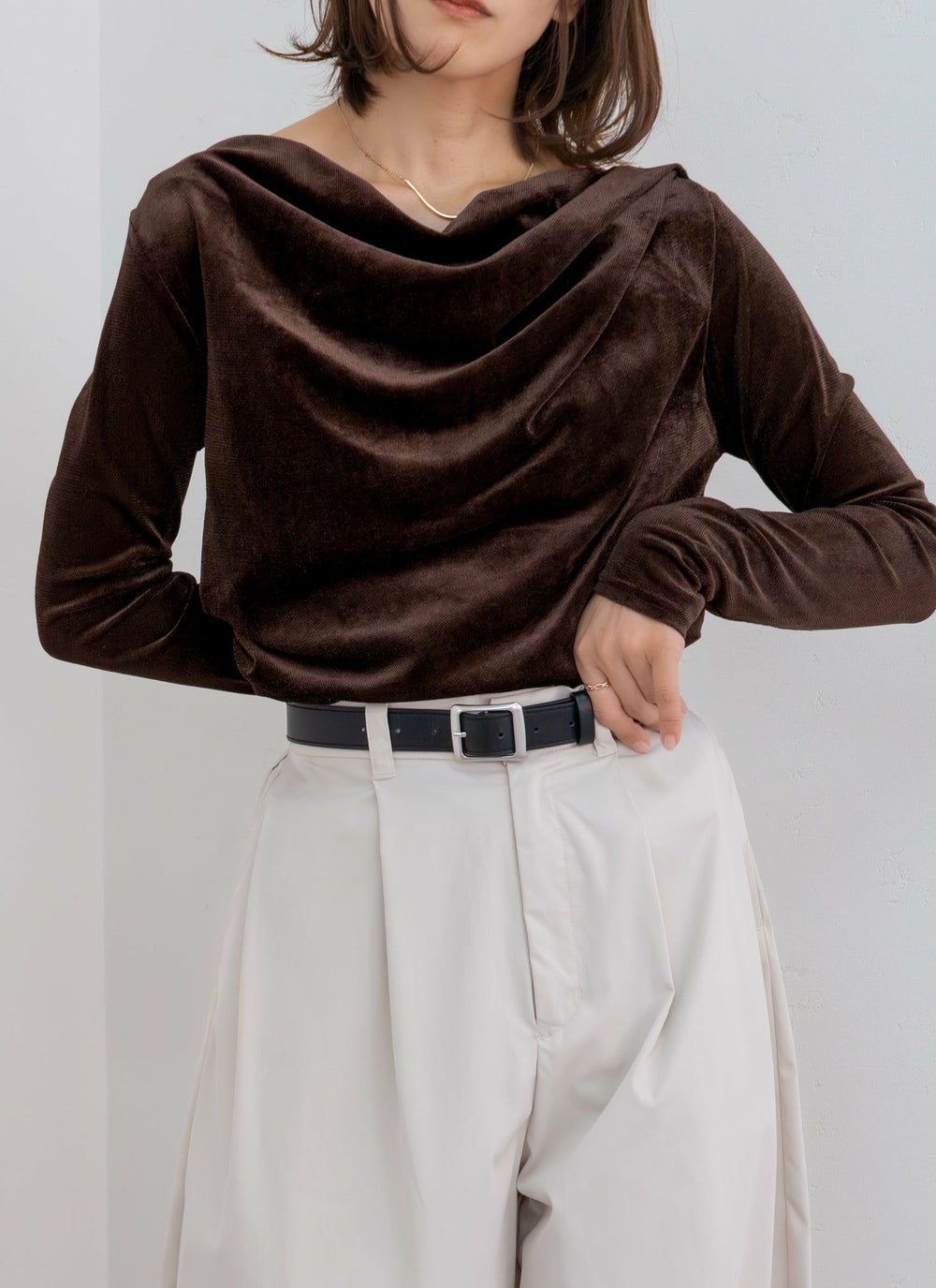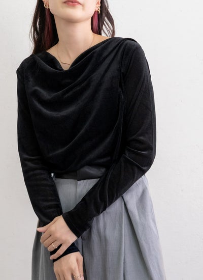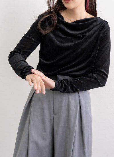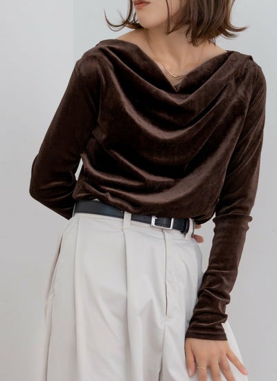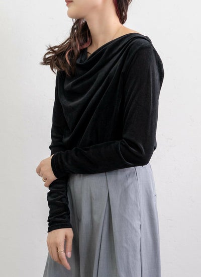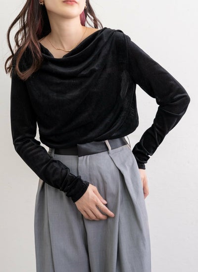 revoam【光を柔らかく受けるシアーベロアが、上品なドレープを演出するトップス】 【20%OFF】シアーベロアドレーププルオーバー