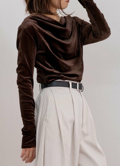 ほんのり艶めくシアーベロア素材が、上品でセンシュアルな雰囲気を演出。