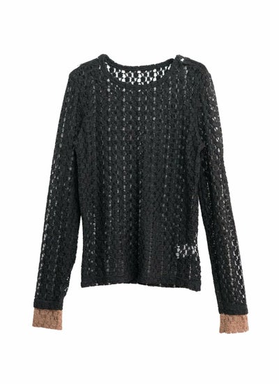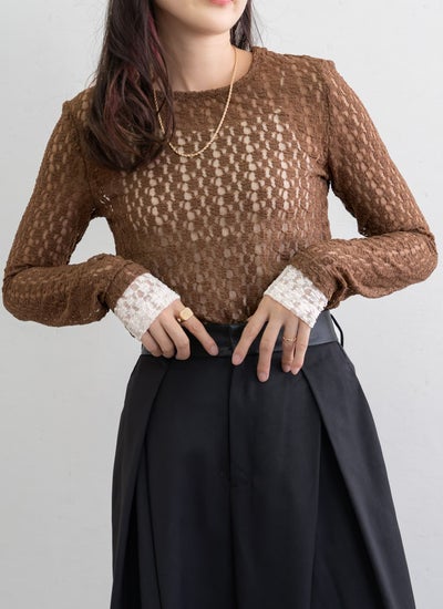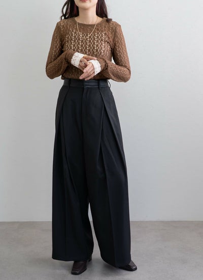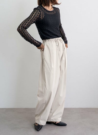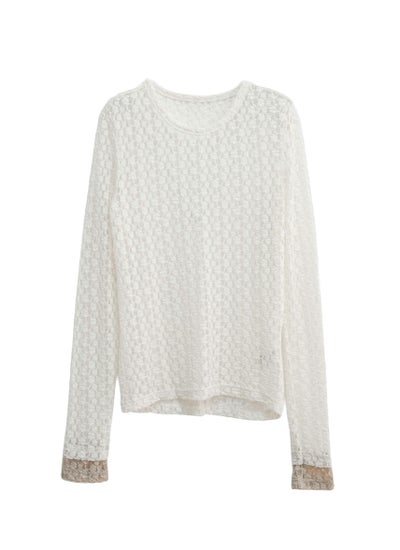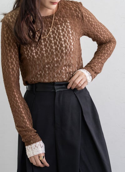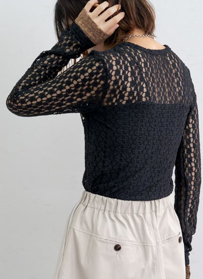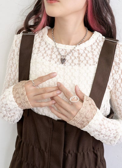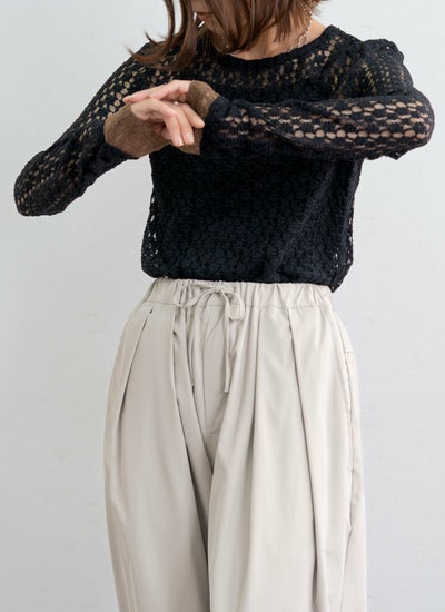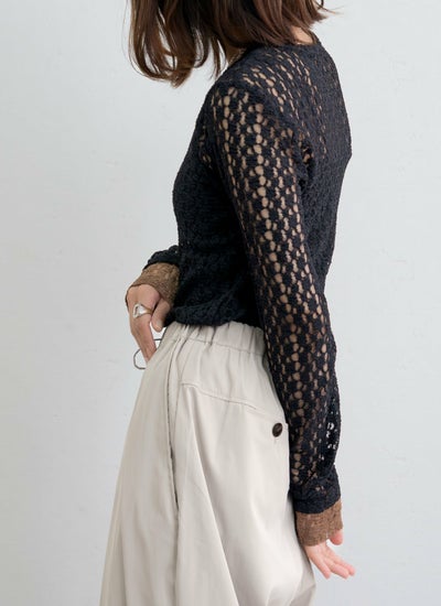 繊細なカットレース素材で軽やかな透け感が魅力な袖口配色トップス。