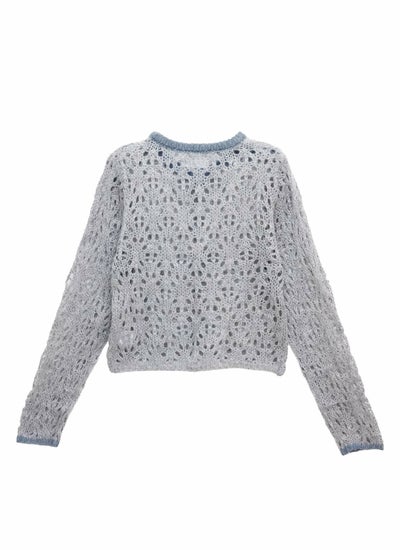 4. 【20%OFF】透かし柄配色クルーネックカーデ