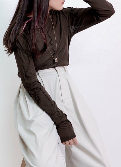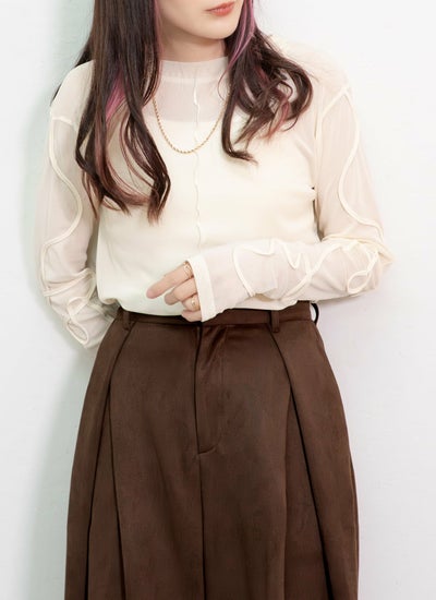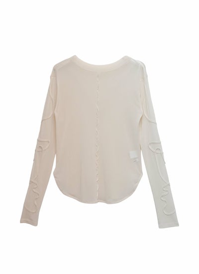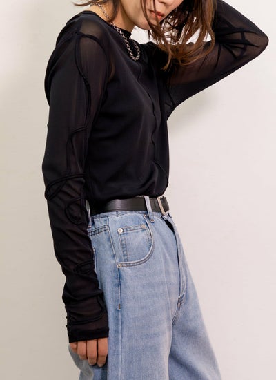 デザイン性が高く、透けすぎないシアー素材が今年らしいシンプルな長袖Tシャツ。