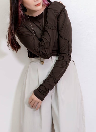 revoam【袖のコードデザインがポイントのシアートップス】 【10%OFF】袖コード刺繍クルーネックプルオーバー