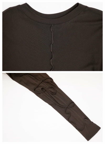 袖コード刺繍クルーネックプルオーバー