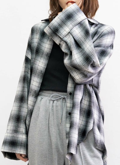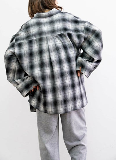 肩から手首にかけてゆったりと広がるワイドスリーブが特徴のチェックシャツ。