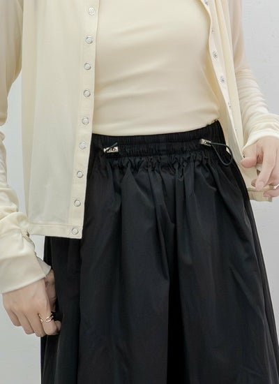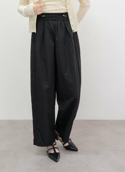 程よいハリ感と微光沢のあるタフタ素材を使用したハリのあるさらっとした生地感が特徴的なコクーンパンツ。