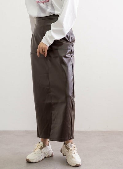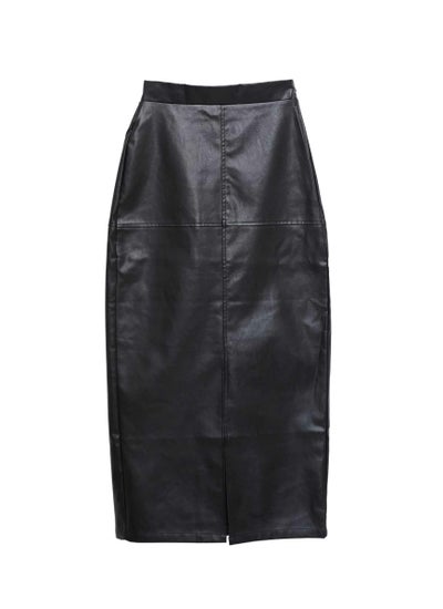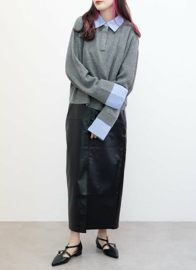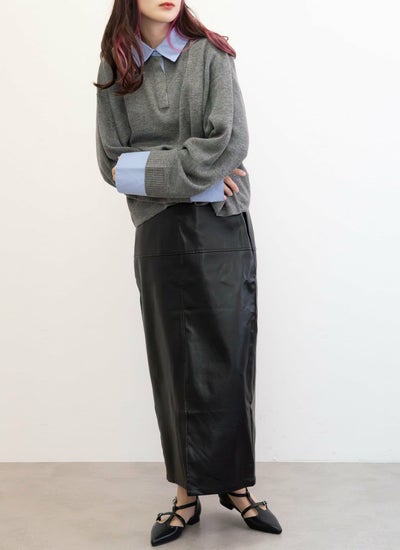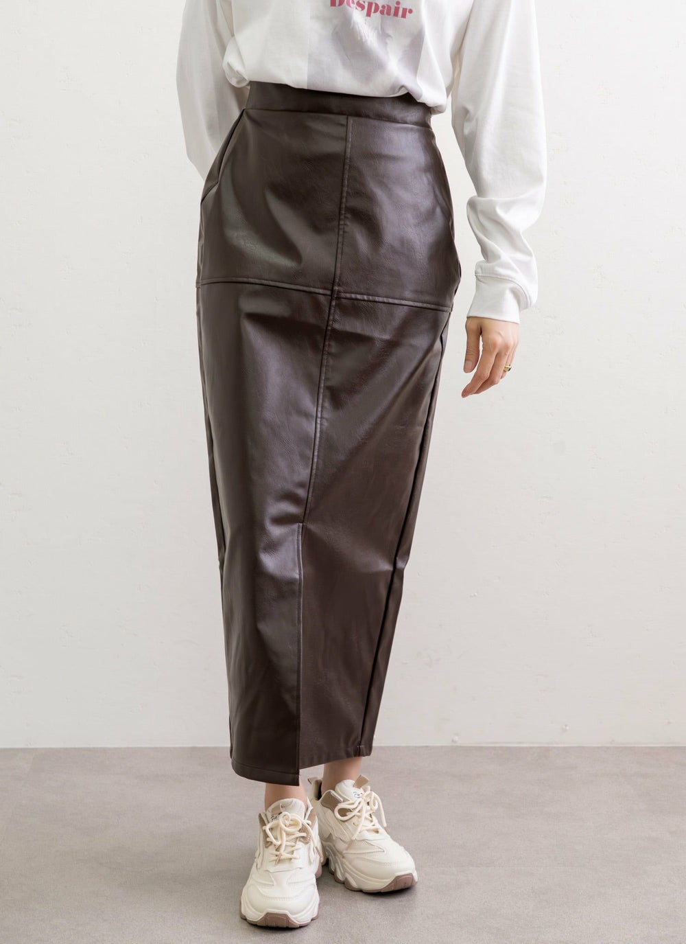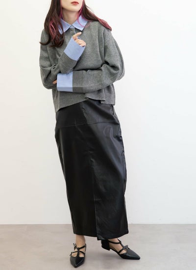 revoam【柔らかなフェイクレザーで仕立てたタイトスカート】 【10%OFF】フェイクレザー切替タイトスカート