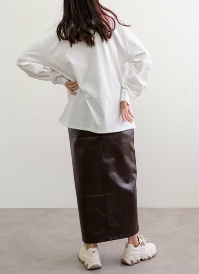 大人っぽいシルエットのフェイクレザースカートが登場。