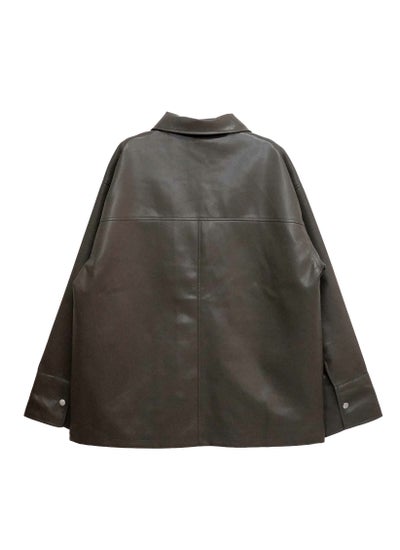 revoam【シーズナブルな雰囲気を高める、フェイクレザーミドルカバーオール