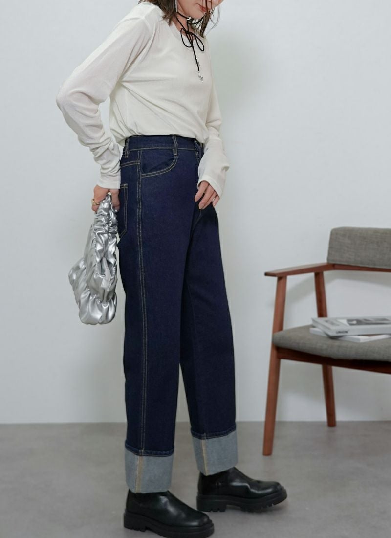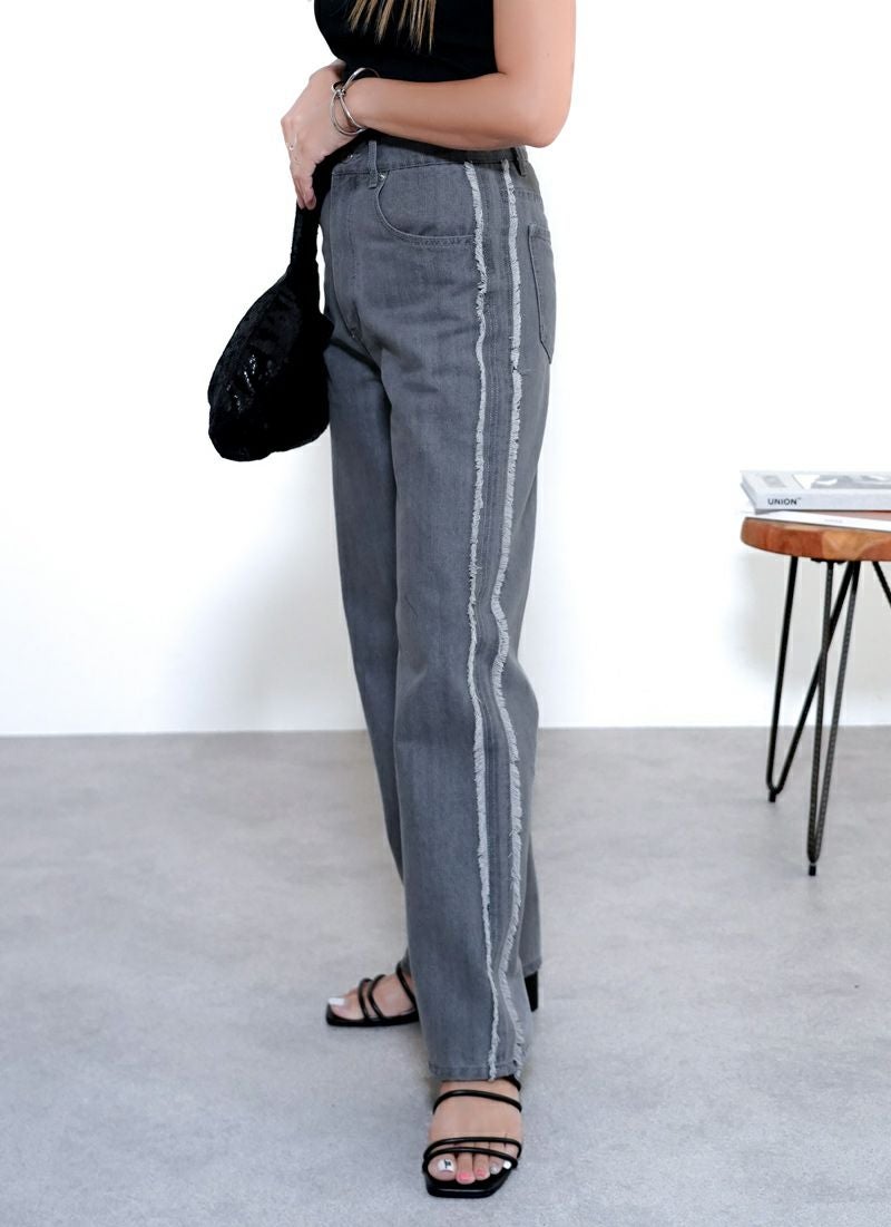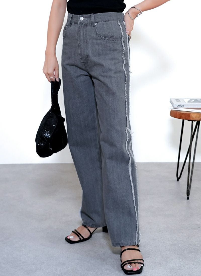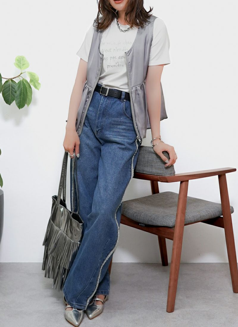 revoam【カジュアルすぎない、きれいめストレート。こなれ感を引き出す“フリンジライン”がポイント】 【25%OFF】フリンジラインストレート デニムパンツ