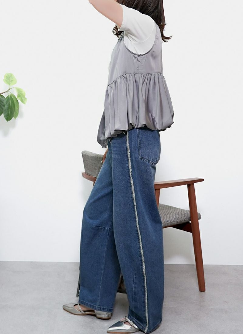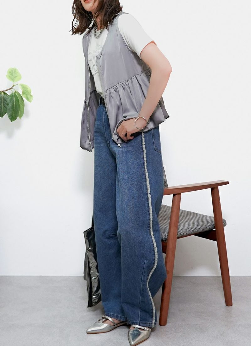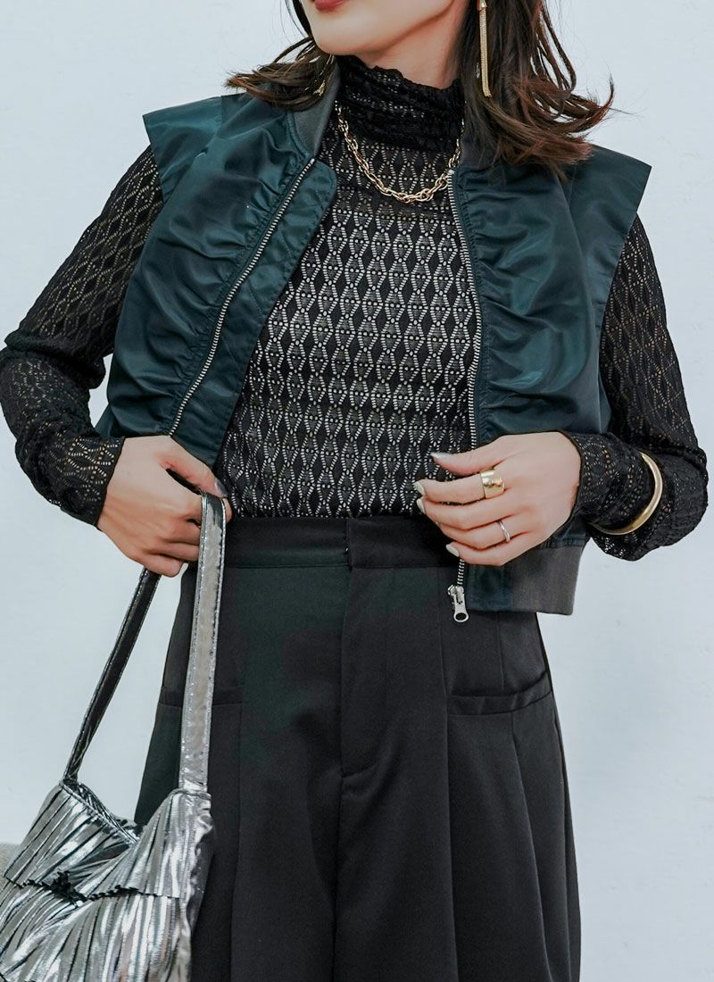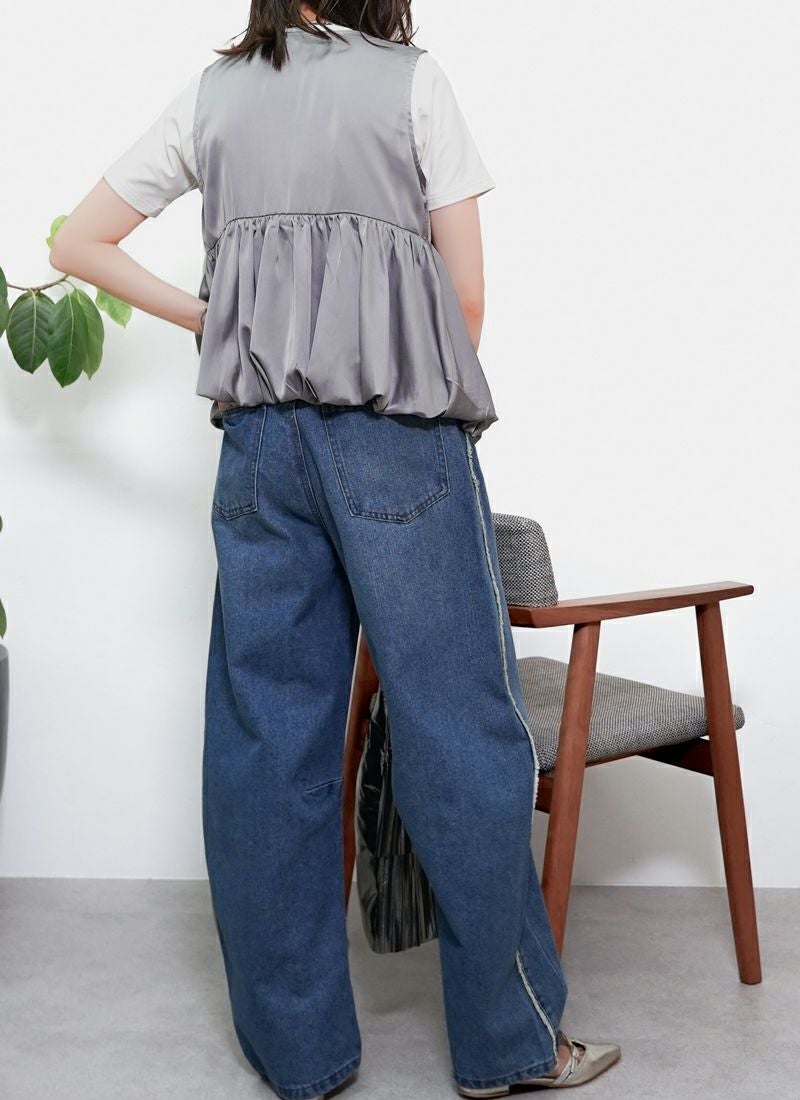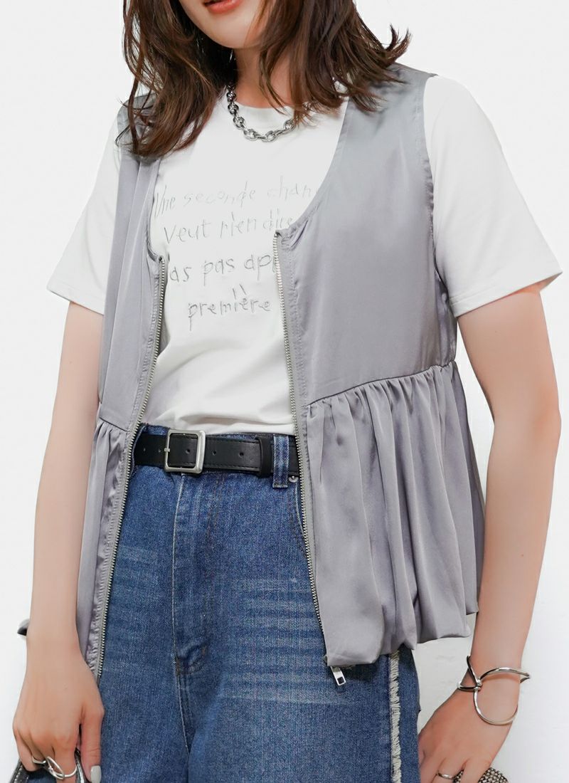 【新作おすすめ】 【20%OFF】サテンフロントジップバルーンベスト