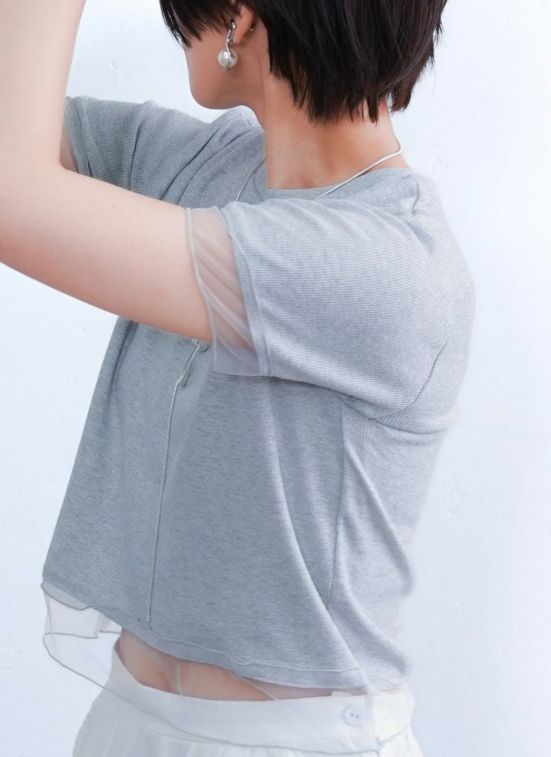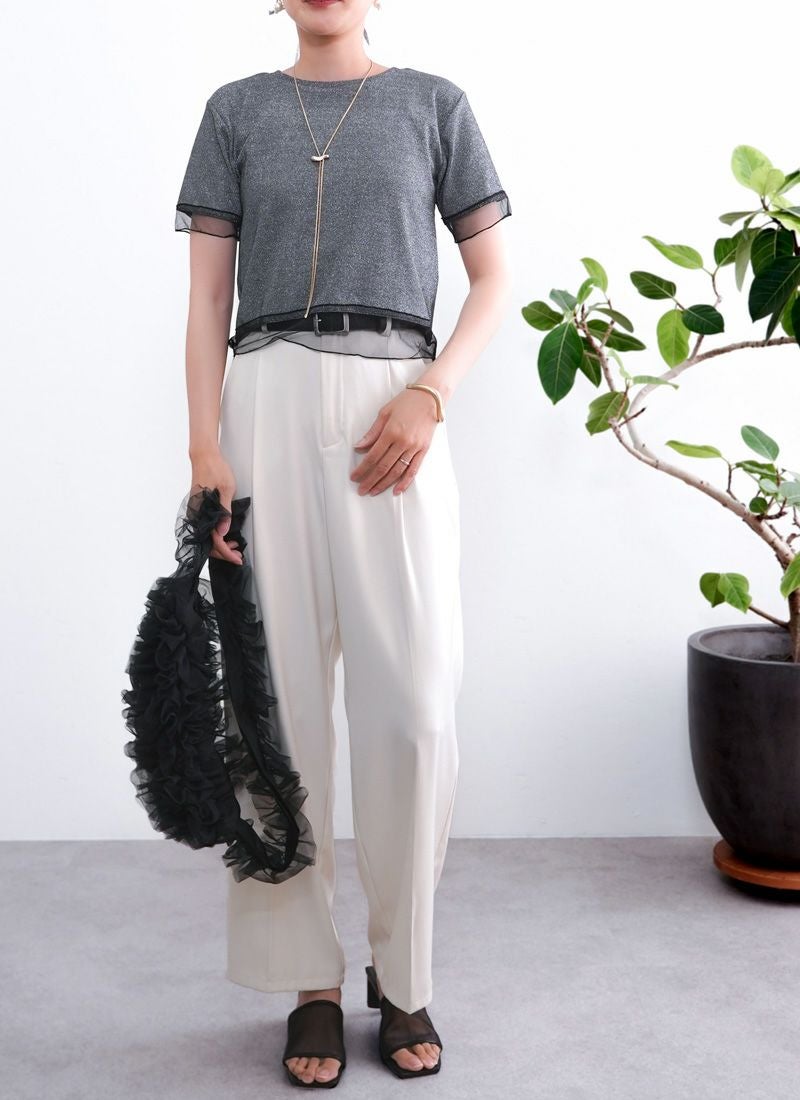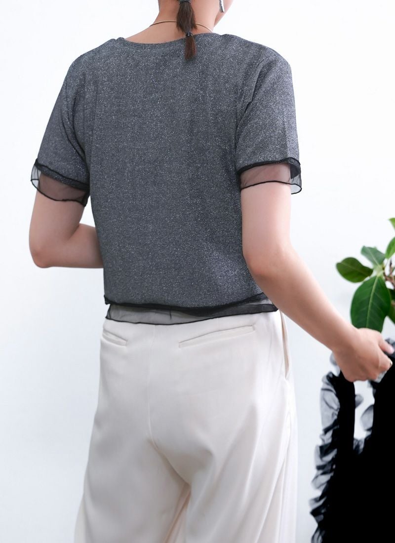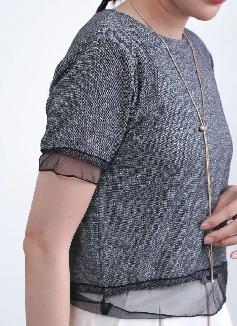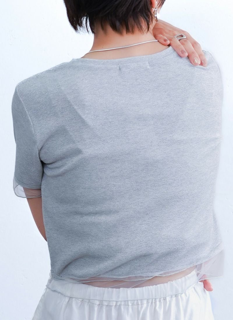revoam【涼しげシアーとラメの上品さが絶妙バランス。カジュアルからきれいめまで、幅広く使える夏トップス】 【20%OFF】ラメテレコシアーヘム コンパクトTee